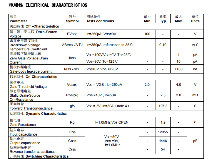 在其特性中具備低導(dǎo)通內(nèi)阻、低柵極電荷、100% EAS測(cè)試、100% DVDS熱阻測(cè)試、100% Rg測(cè)試、VTH細(xì)化分檔、SGT工藝、